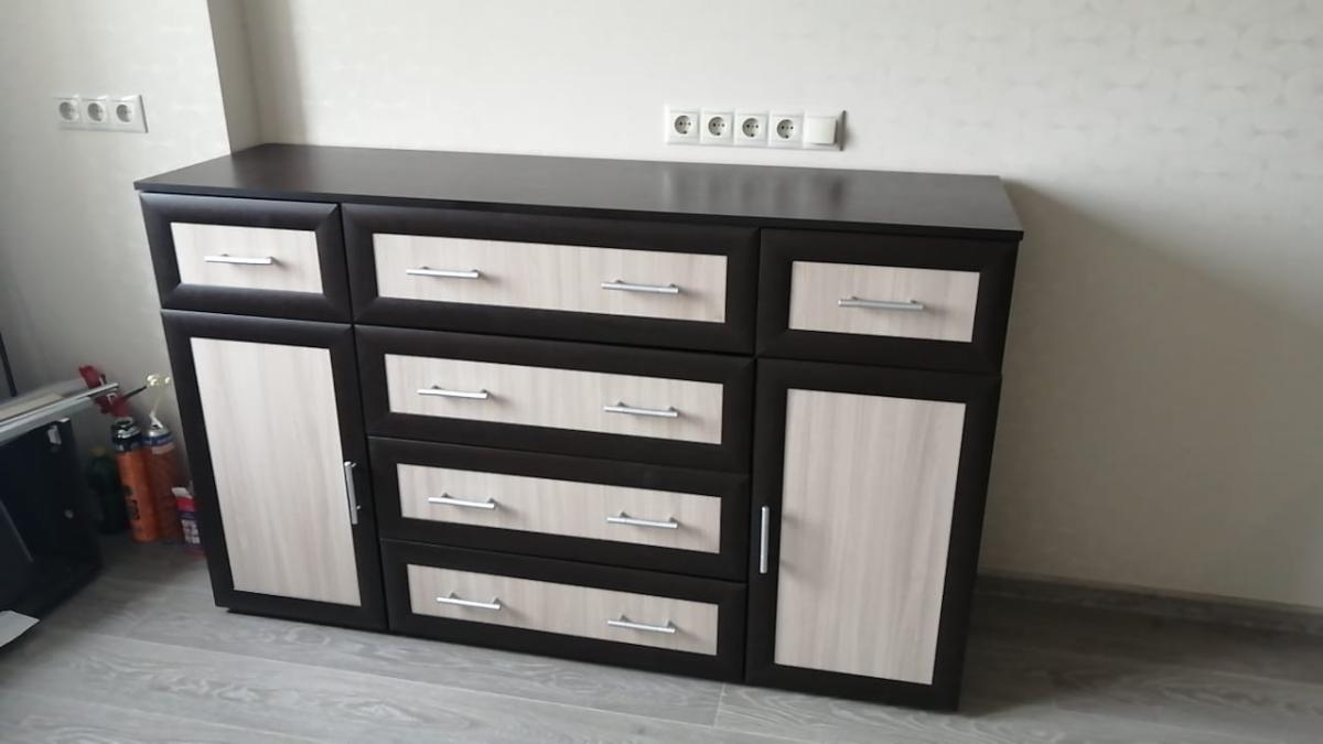 Заказали комод для детской (Заказ №407678) в цвет остальной мебели. Очень вместительный. Дополнили направляющими с доводчиками. А чтобы дети ни за что не цеплялись, при заказе указали вырезы на ящиках вместо ручек. Детали все качественные, крепежные отверстия все совпадают. Спасибо. Будем заказывать еще.