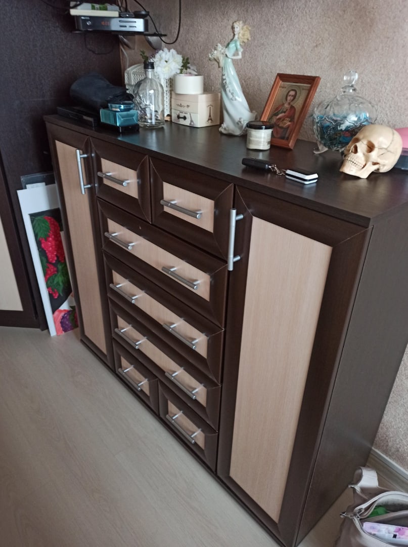 Не дорогая, удобная и вместительная мебель! Шкаф заказывали по индивидуальным размерам, что повлияло на цену не существенно. Сделали быстро, доставили тогда, когда нам было нужно. Сборщика ждали не долго, мебель собрали быстро и качественно, устранив недочеты фабрики.Перед запуском в производство дополнительно позвонили, уточнили детали и устранили разницу между высотой двух шкафов. То, что ручка дверцы не с той стороны - это мой просчет.