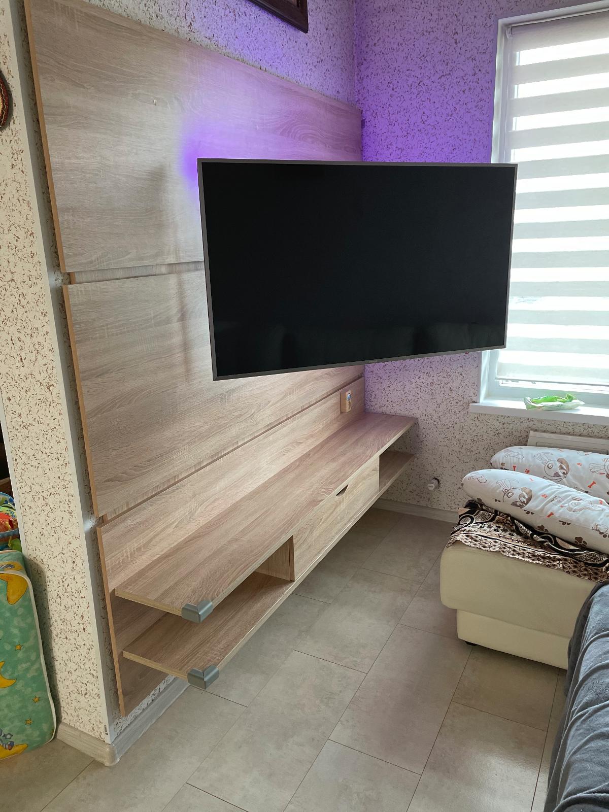 Заказ 00000564751, изделие Тумба под телевизор Виста-11 BMS (1300х750х300)Было необходимо подобрать тумбу под TV по ранее выбранной цветовой гамме мебели и размерам. Оформили заказ в BestMebelShop: тумба под телевизор Виста-11 BMS , габариты 1300х750х300 мм. Это наша вторая покупка в этом интернет-магазине за полгода. Изготовили за 3 дня, доставили в согласованное время — в 23.30. До оплаты курьеру наличными была возможность проверить качество и комплектацию изделия — все ОК. Схема сборки (простенькая) имеется, проблем с самостоятельной сборкой не было. При оформлении заказа выбрали дополнительные опции: ПХВ кромка 2*19 мм, петли с доводчиком, ручки Боярд сатин (металл).Стоимость заказа 9550 руб., с учетом имеющихся у нас бонусов за первую покупку всего к оплате с доставкой вышло 8287 руб. Аналогичные изделия есть в магазинах под заказ, сроки изготовления от 14 до 45 дней, 50% предоплата. Покупкой довольны. На фото две стеклянные дверцы заменены на одно (стекло бронза 360х370 мм) — так удобнее.