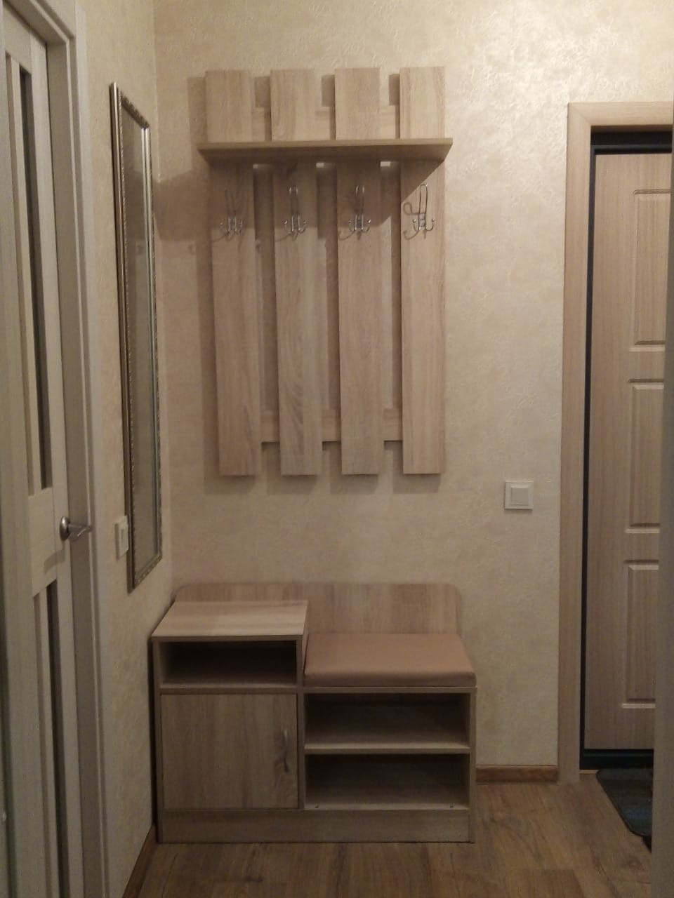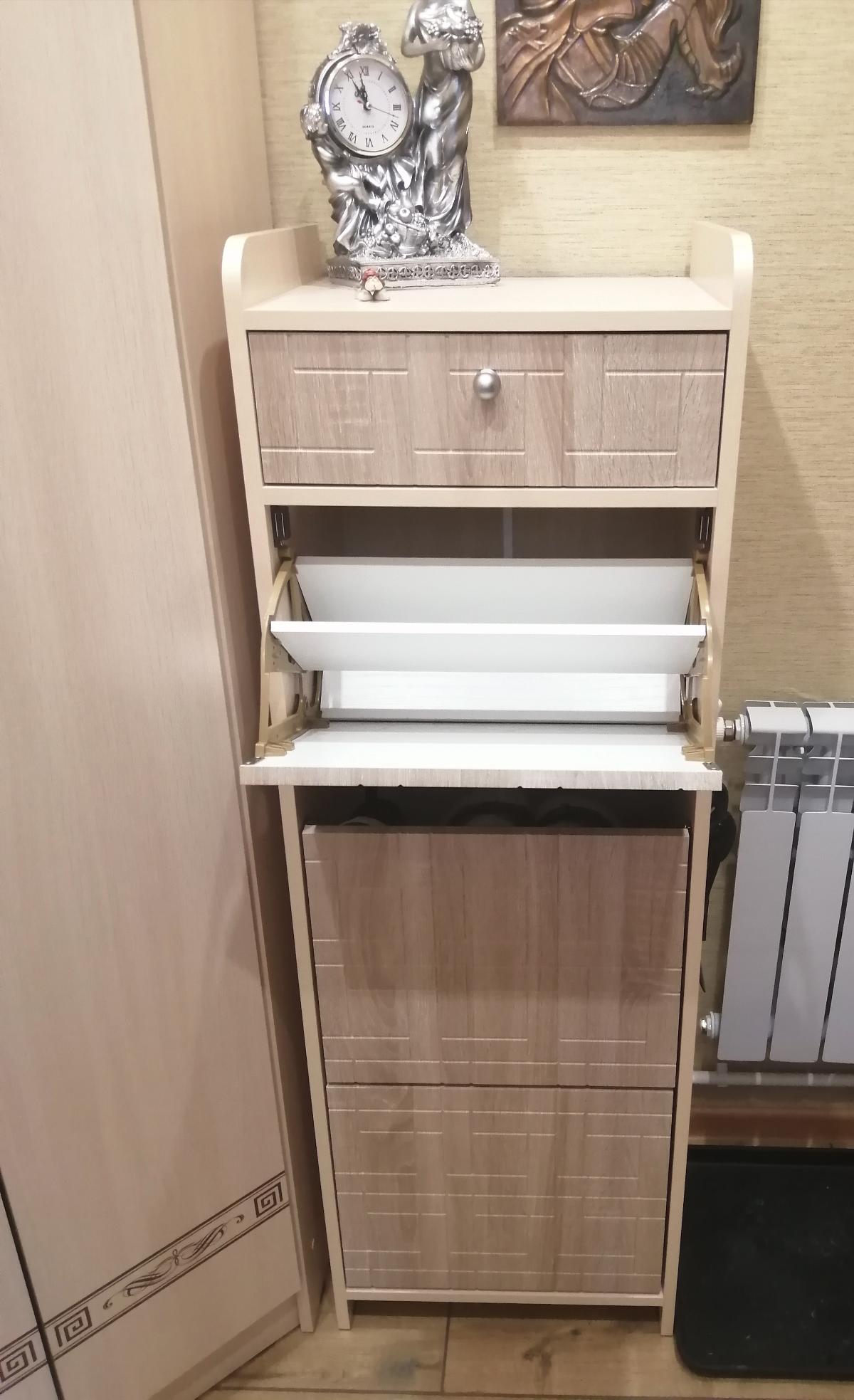 Заказали тумбочку вместе с вешалкой, получился хороший комплект.Оформили по нашим размером с подборкой цвета "дуб сонома".Расстроило только отсутствие ручки в пакете с фурнитурой, пришлось купить отдельно.В наш интерьер и маленький коридорчик вписалась отлично.