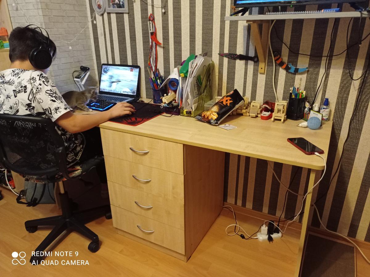 Заказ 00000472344, замечательный стол!!! Сын счастлив! Отлично вписался компьютер и есть место для учебников и тетрадей! Купили на распродаже, я даже переживала, может он какой-то бракованный, но все отлично!