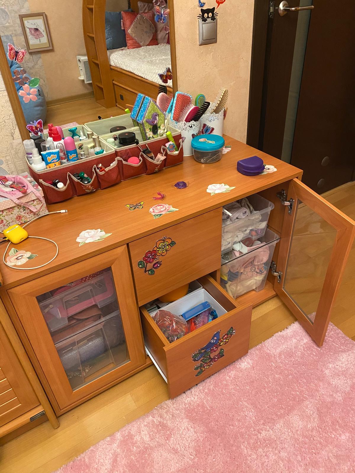 Заказала тумбу Микки ПМ дочери в комнату в качестве трюмо под зеркало. Подбирала под мебельный гарнитур, поэтому в заказе изменила цвет дерева и размеры. Такая возможность очень порадовала.  Заказ был выполнен в срок, качество изделия отличное, цена вполне доступная. Сборщик, рекомендованный сайтом, собрал все быстро и аккуратно. Смотрится очень аккуратно,  тумба вместительная. Пользуемся с удовольствием. Спасибо магазину BestMebelShop.ru