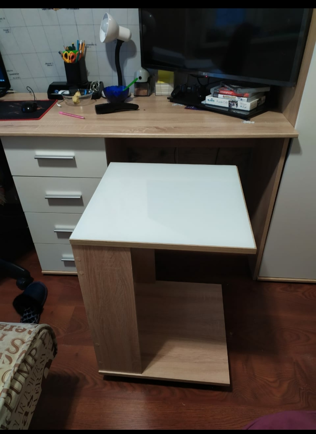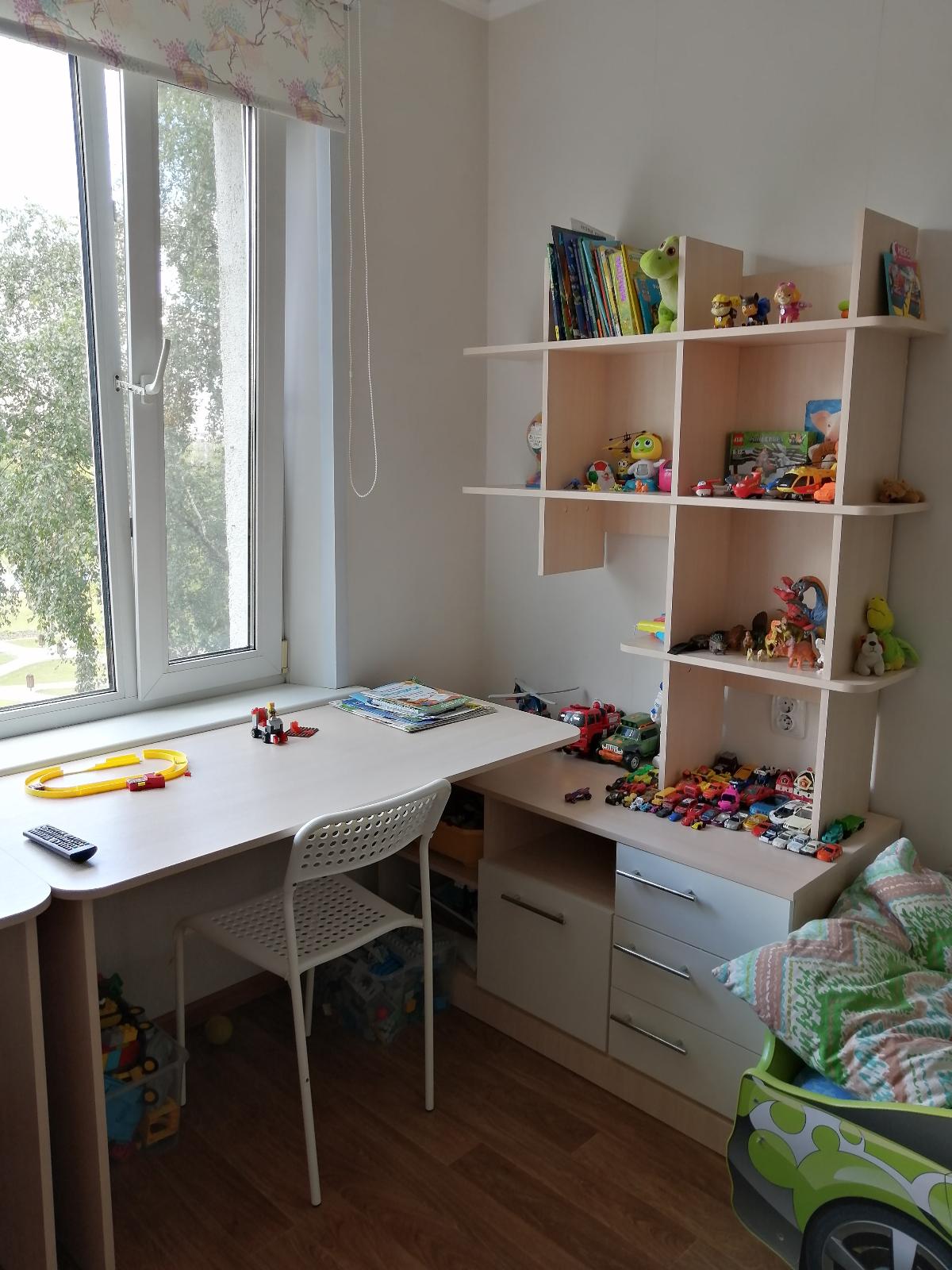Столы очень понравились! Поставили зеркально и углом. Вписались отлично, места занимают немного, при этом достаточно вместительные. Со сборкой проблем не возникло, все отверстия на своих местах. Пришлось только немного повозиться и сделать дополнительные отверстия, чтоб развернуть их углом, но в итоге всё получилось. Дети довольны!