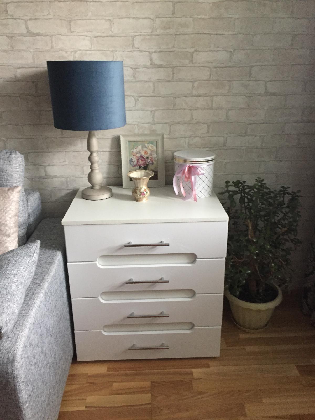 Вот моя очередная покупка в этой Компании (до этого покупала глянцевую стенку). Стильный, функциональный и красивый комод. Заказала свои размеры. Собирал его муж. Да, еще заказала навесной компьютерный стол, но еще его не собрали. Позже выставлю фотки. Все как всегда супер. Спасибо всем! Советую всем этот сайт.