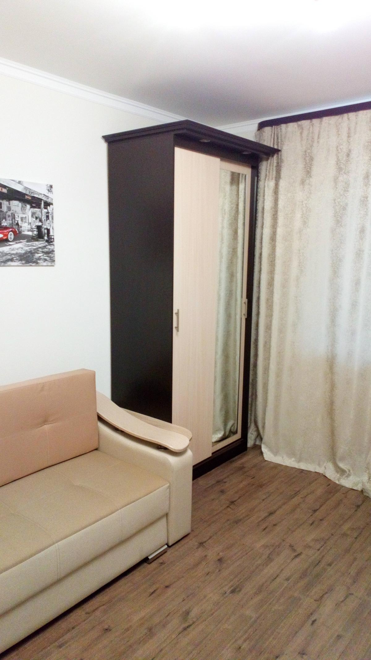 Шкаф нас удивил. Он оказался длинным и тонким (НЕ таким широким и коротким как на ваших картинках). Матового стекла в нем тоже нет. Он весь деревянный (или что там за материал). Мы думали хранить в нем папки, но они, конечно же, НЕ везли. В итоге мы приспособили его под детские вещи и, в целом, довольны. Смотрится стильно, как видите на фото (сверху лежит рамочка, не обращайте внимания). Убираться очень удобно, когда мебель висит. Благодаря вашей компании столы у нас тоже навесные и мы счастливы)