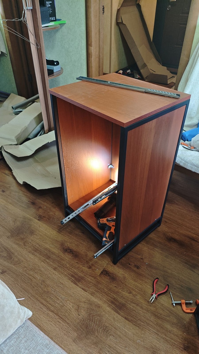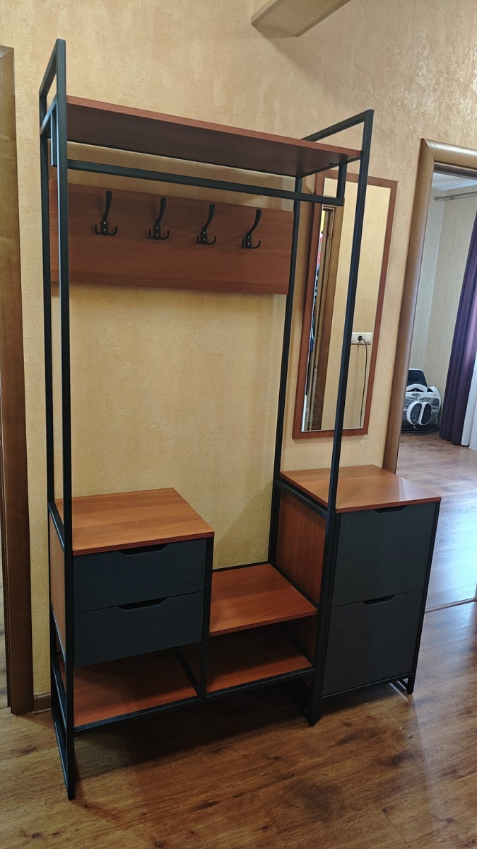 Ну, что... Первым буду. Очередная конструкция на раме. Уже был стол (огромный), уже был журнальный столик. Теперь вот прихожая. Собирать это всегда отдельный квест, так что запаситесь терпением и 3д воображением. Но все собрано и вполне себе удачно вписалось в квартиру, есть последние фотки. Ну и несколько фото в процессе сбора. А теперь о неприятностях. Хех, куда без них?1. В сборке недоставало одного мебельного конфирманта и и одного железного потая под винт. Ну благо есть второй комплект потаев пластиковый. А конфирмантов у меня примерно 500 штук на балконе 2. Наклейки на днище ящиков оторвать не повредив краску невозможно. Неприятно.А теперь странности конструкции:1.  Зачем нужны подвесы на вешалке? Вы реально думаете что кто-то повесит всю эту дуру за ЛДСП закрепленную 4 саморезиками?2. Крепление верхней полки логичнее было бы перевернуть петлями вверх. Обычный человек (не дядя Степа) находится ниже полки и потому может наслаждаться саморезами и петлями, в перевернутом варианте их бы не было видно.3. Саморезы для крепления вешалок внушают. Они всего 35мм. Это в ЛДСП 16мм? Есть конечно куча белых, но именно белых. Сложно было положить комплект черных отдельно?