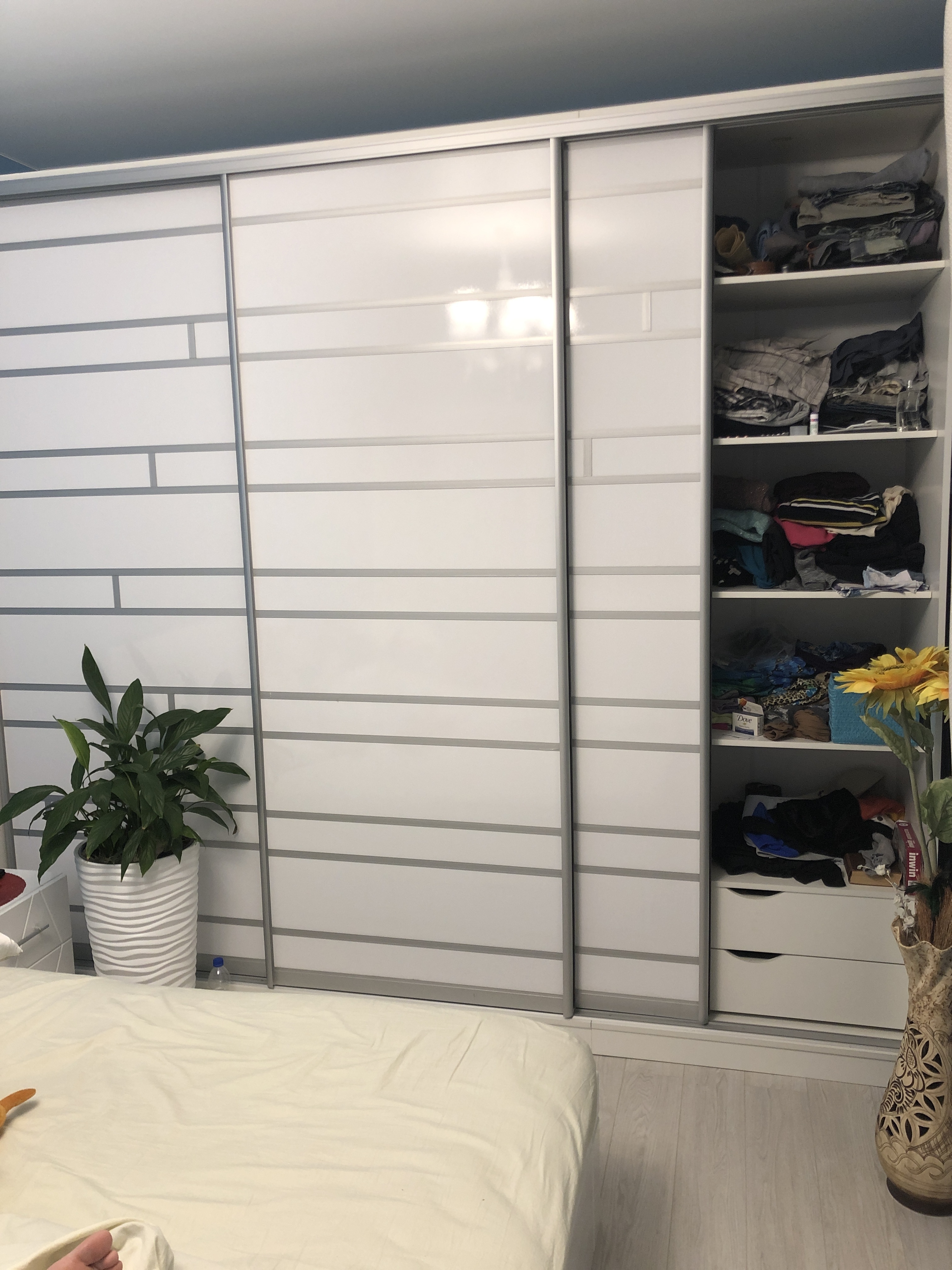 Хороший шкаф купе. Удобно, что размеры изменяются. Мы заказали самый большой, все в порядке, всем довольны. Ящики очень удобные(не в комплекте)