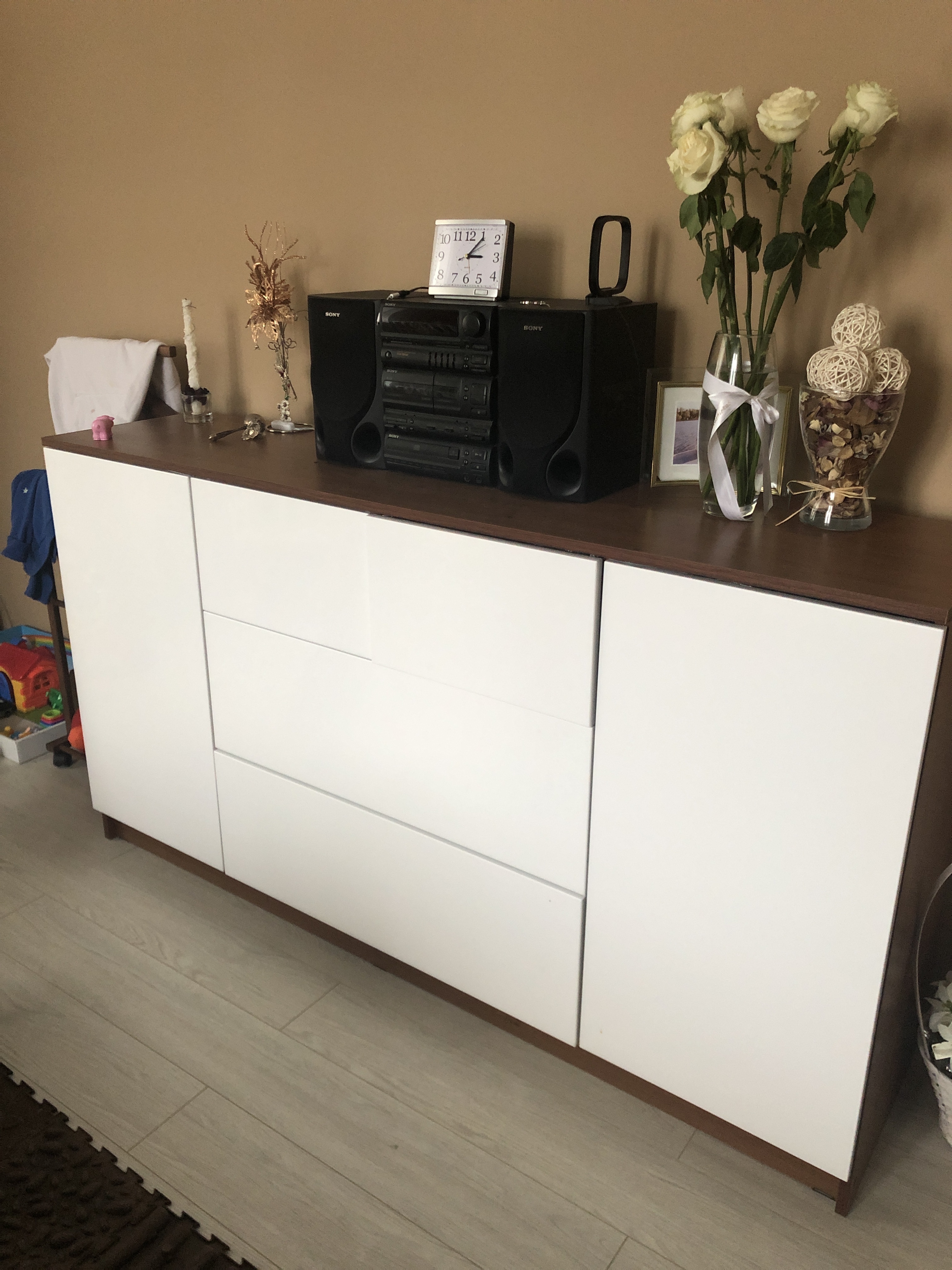 Данный комод привлекает своей красотой ,небольшими размерами , и , в то же время ,большим удобством и вместимостью , можно поставить сверху и телек ,а вовнутрь войдёт и пылесос , ради красоты поменял цвет боковин на популярный "Дуб Сонома " и не прогодал ))))