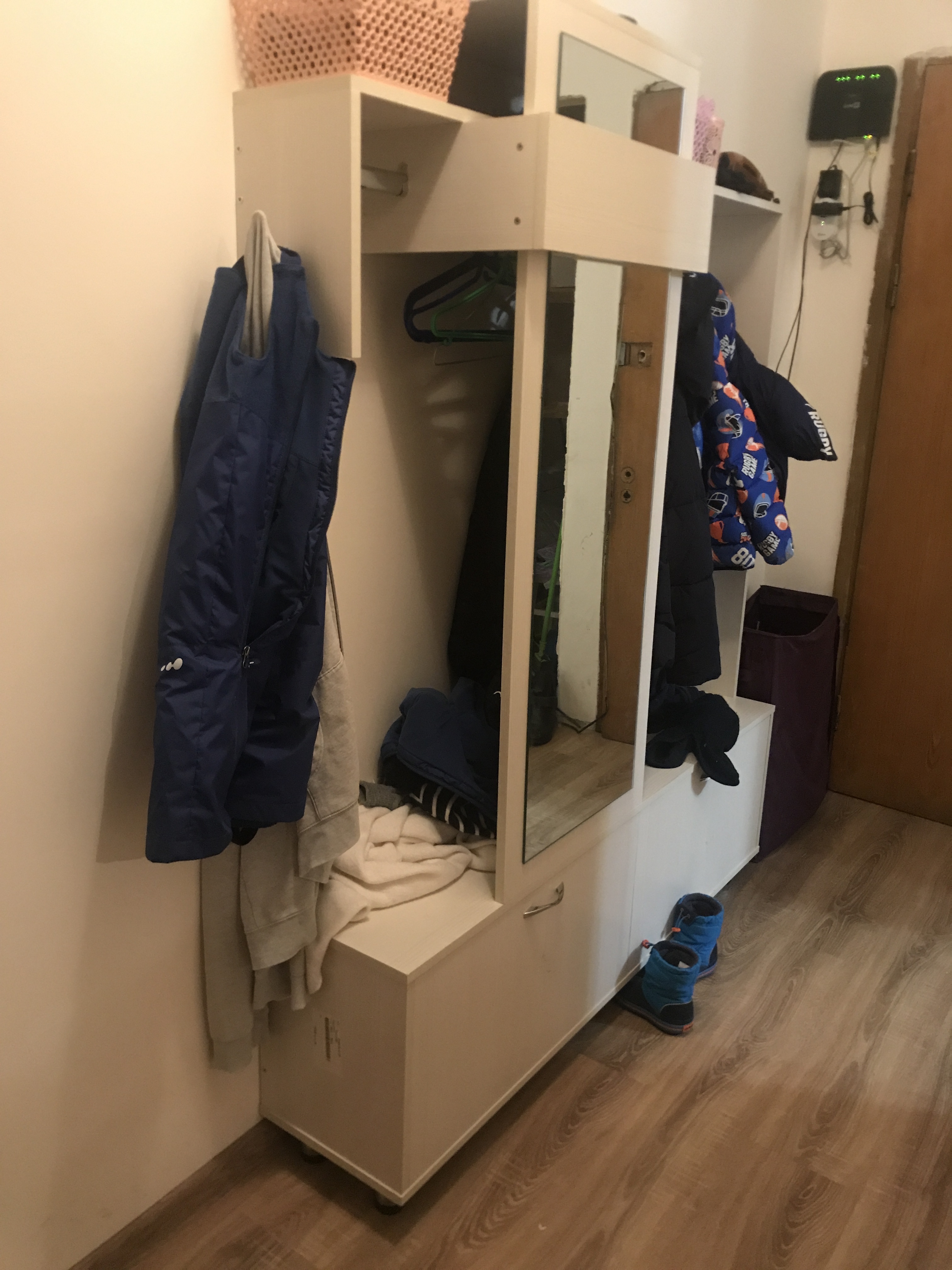 Неглубокая прихожая в узкий коридор. Заказал нестандартную высоту 2600 мм. и два зеркала на двери шкафа. Конструктивная особенность шкафа такова (а может быть это недоработка технолога), что вид с верху выглядит в виде короба глубиной 70-100 мм. Так что пыль сверху смахнуть нельзя (только собирать). В целом доволен.