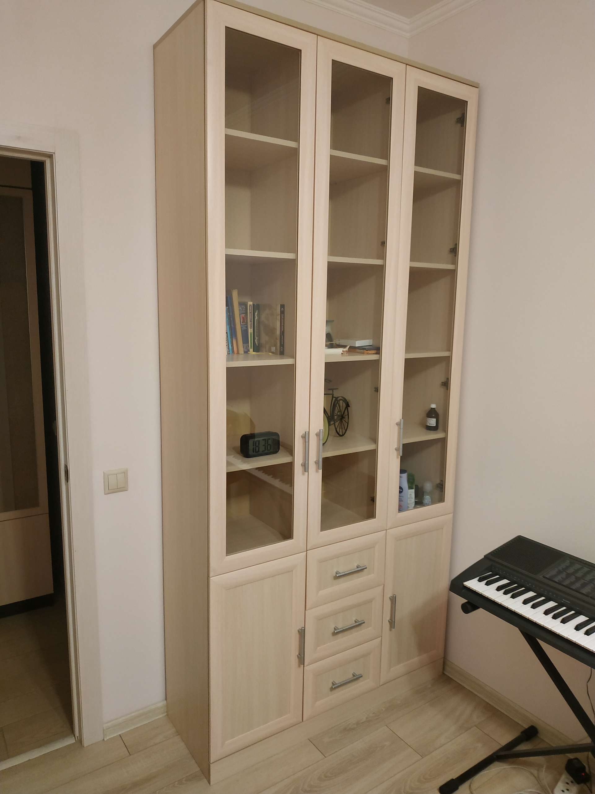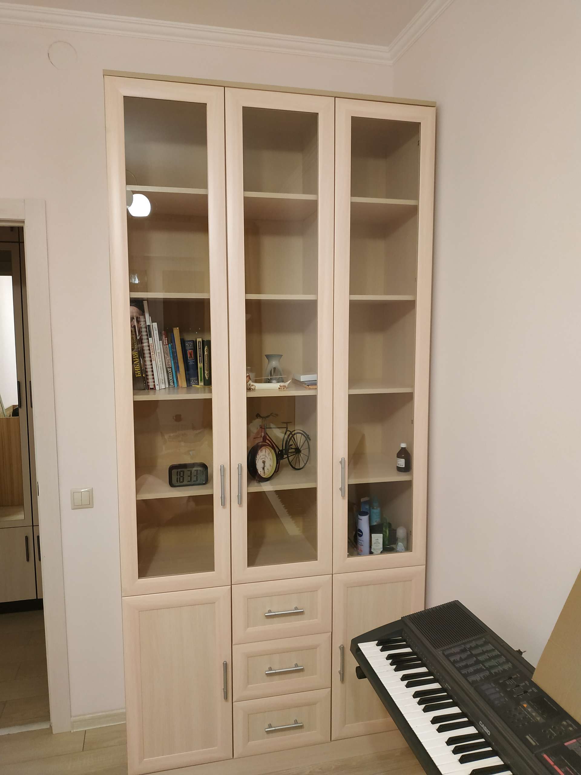 Заказали шкаф в белом цвете с глянцевыми дверьми. Очень удобно что можно выбрать покрытие и цвет, фурнитуру и наполненность. Двери хорошего качества, каркас низкого, но за такую цену - отлично👌 были небольшие сколы краски на полках, но тоже не критично. Инструкция не совсем простая, но разобрались быстро, собирать в 4 руки полчаса.