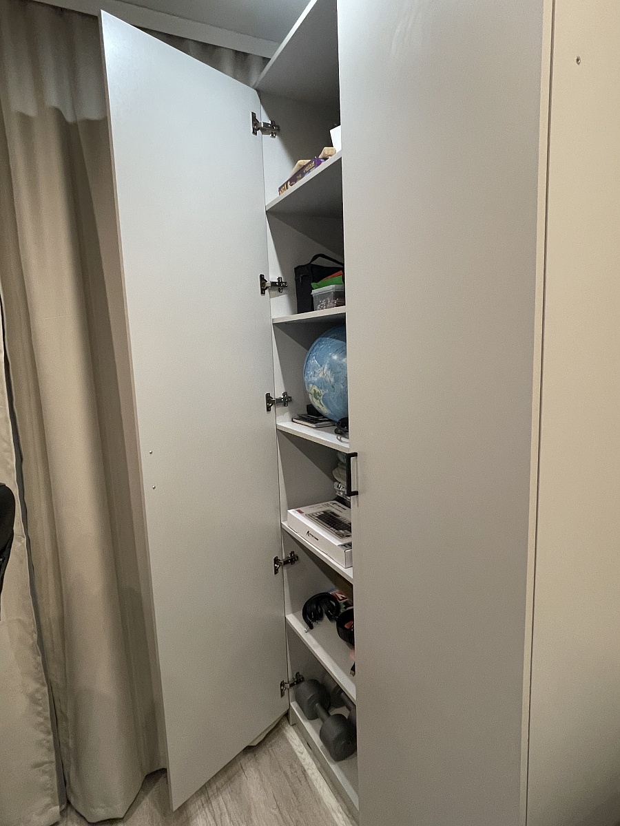 Заказ 00000967516Отличный шкаф! Легкая сборка. Собрал супруг буквально за час. Цвет то что надо. Выбрали фурнитуру и размеры по нужным параметрам. Приехал в целости. Шкаф вместительный, самое то для детской
